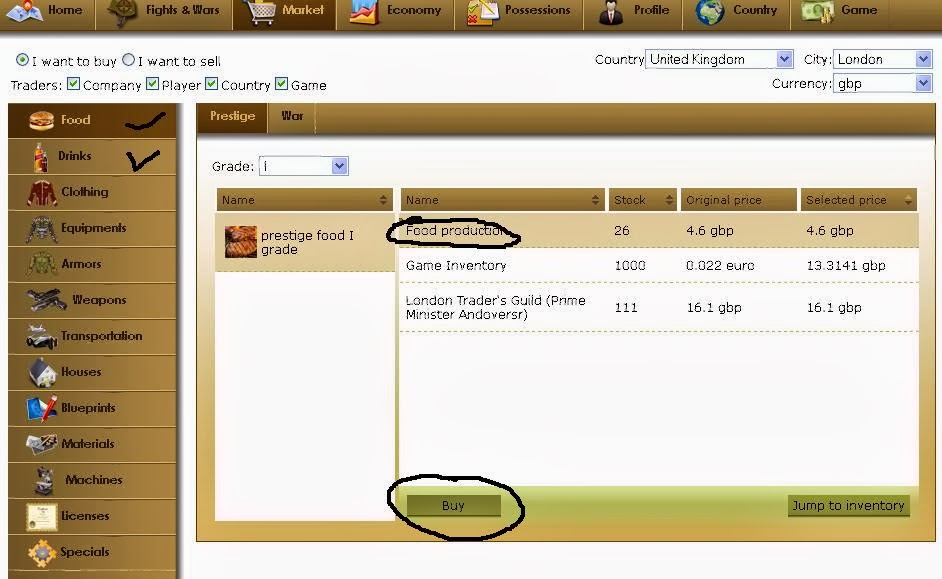 2) (Optional)Beli Food, Drink Prestige, Golf Club Ticket setelah fight 20-25 kali, pergi ke market beli food prestige, drink prestige dan golf club ticket buat menambah prestige anda. Jika prestige bertambah maka (bisa dibaca dibawah mengenai prestige) pemasukan work, bonusfight dllnya bertambah. Masing-masing food dan drink prestige +5 prestige dan berdurasi 12jam. Golf ticket +15 prestige berdurasi 24jam